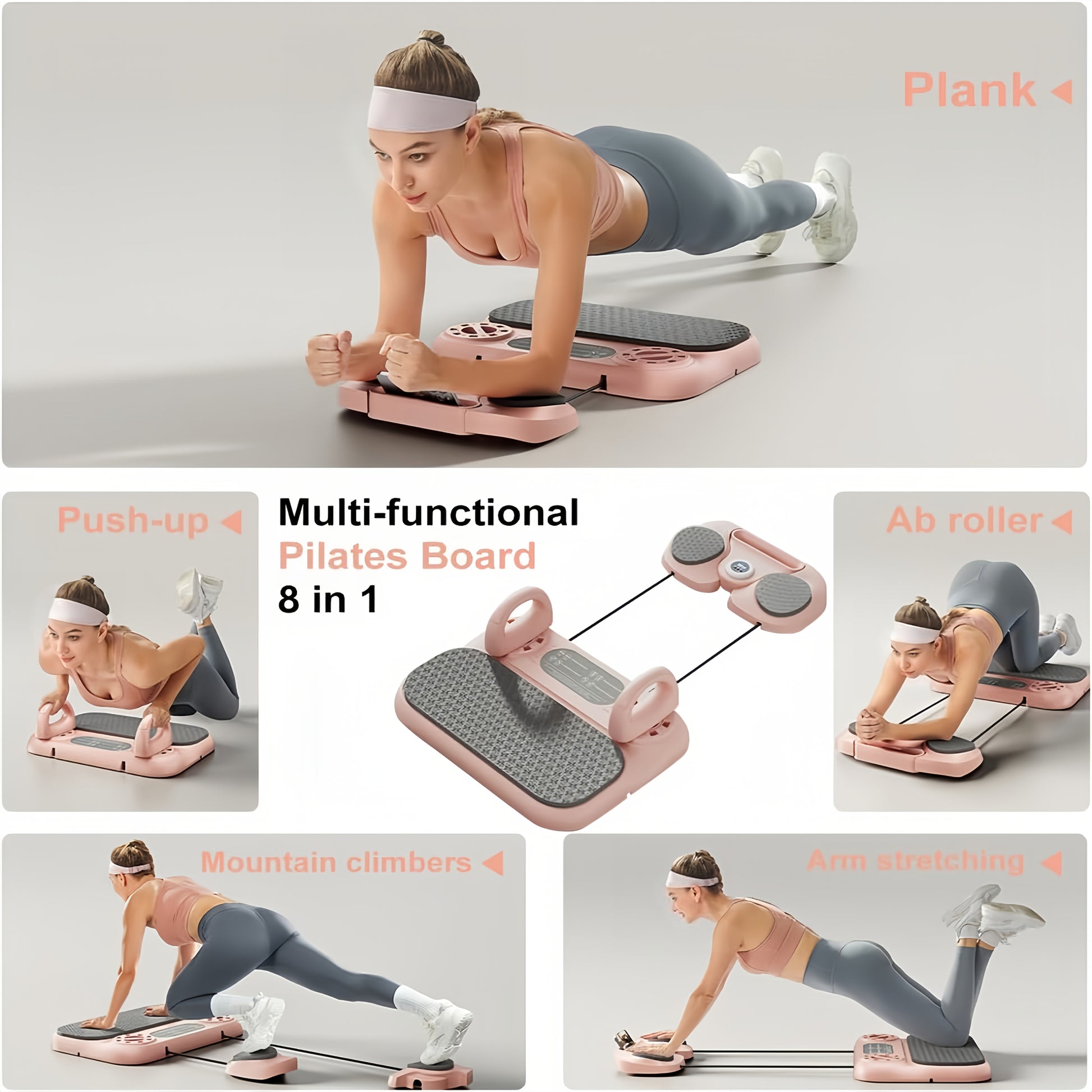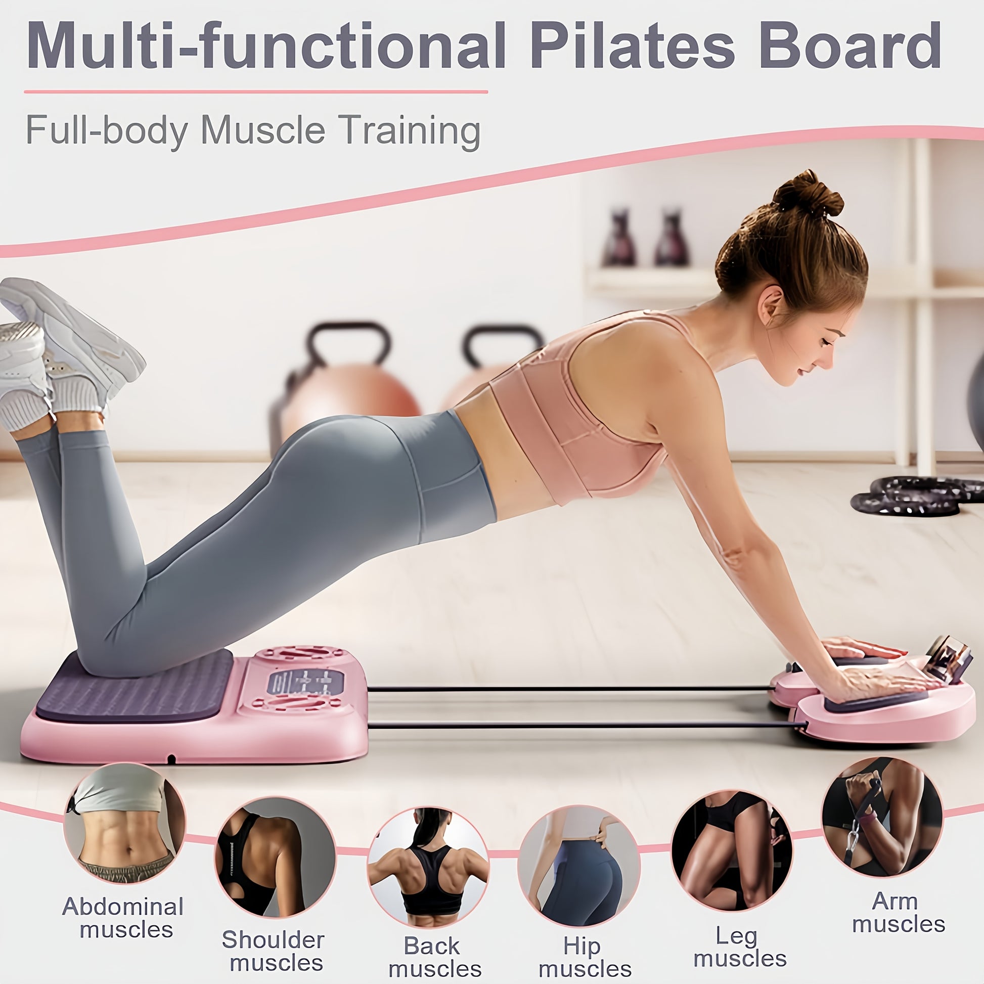 [8-in-1 Pilates Reformer Board] Unlock 15+ exercises with this all-in-one Pilates reformer board, combining Pilates board, resistance bands, ab roller, push-up handles, balance board, plank support, and Pilates bar. Perfect for core, glutes, legs, arms, and full body sculpting, this compact pilates equipment brings studio-quality results to your doorstep.